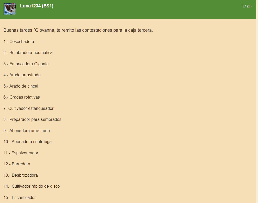 Moderación: no son válidas porque anteriormente, habías dicho el genérico, las respuestas: cosechadora de algodón, cosechadora de cereales, cosechadora de forrajes y cosechadora de remolachas. - 4 Puntos.