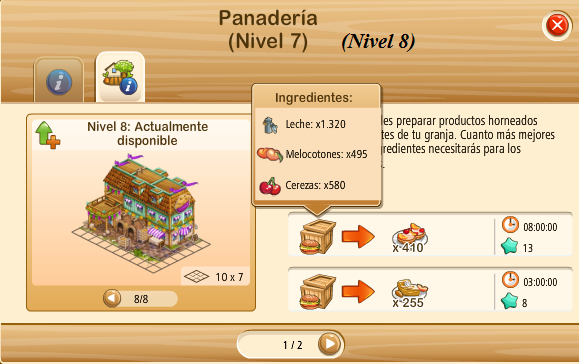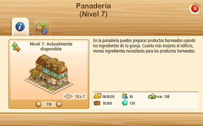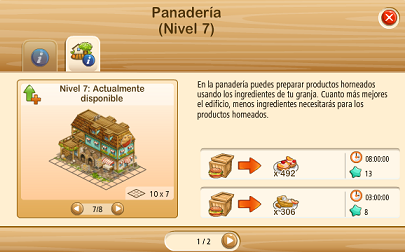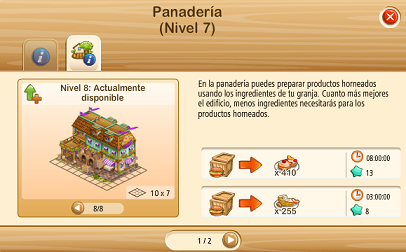 Buenas tardes, la panadería al subirla a nivel 8 da menos productos que a nivel 7, por lo menos eso indica.