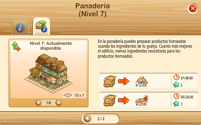 disculpa sr molinilloen la panaderia de mi granja gourmet esta a nivel 5 pero al subirla en la informacion es evidente que disminuye el productomolinillo (ES1) dijo:La panadería no produce menos, produce las mismas unidades de producto en todos los niveles, lo que hace es reducir las cantidades necesarias para producir esa cantidad al ir subiendo niveles....dionella4 (HIS1) dijo:es cierto no vale la pena subir la panadria por que produce menos productos:...