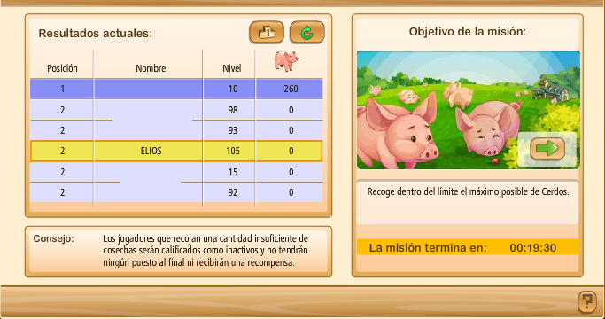 Lo que me causa curiosidad es que dice "Recoge el máximo posible de SEMILLAS dentro del limite de tiempo" y en la imagen efectivamente muestran costalitos con las diferentes semillas o los piensos y aunque en la descripción dice SEMILLAS lo que cuentan son los PIENSOS.