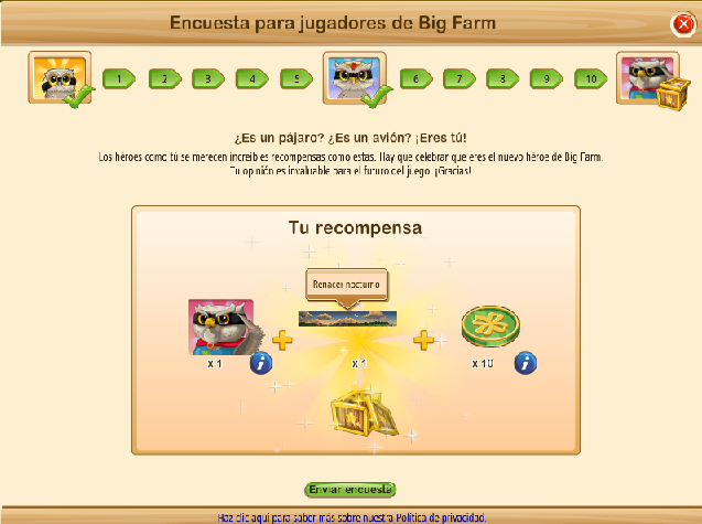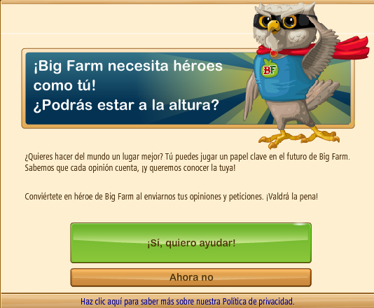 entre otras cosas, que no pongan la ruleta en los campeonatos de cooperativas, puesto que comprar los puntos no es un campeonato limpio, como tampoco lo es los hot deal de compra de puntos. Hay tantas cosas que se les ha pedido y no han hecho ni puñetero caso, que no entiendo lo de la encuesta. En fin, es una batalla perdida mientras haya granjeros que les sigan el juego.