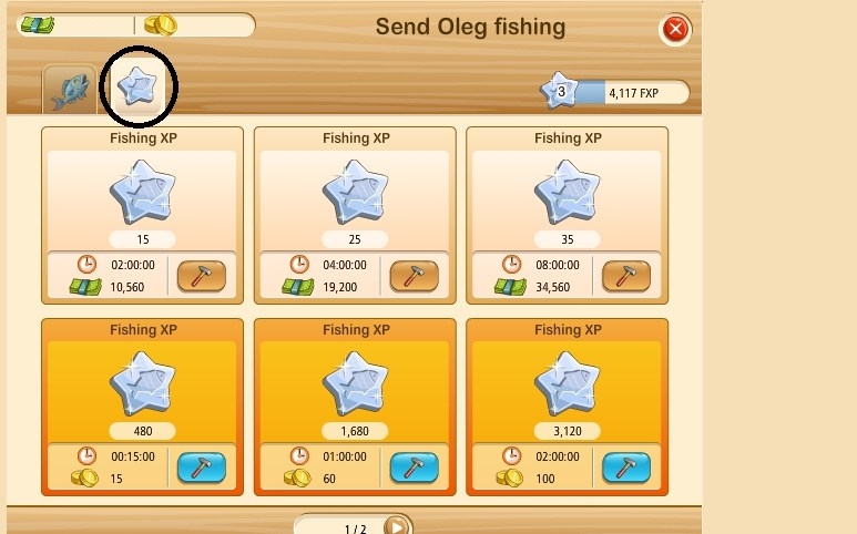 buen dia, despues de hacer pescar a Oleg y gastar famdolares en que pescara xp para subir hasta nivel 8 a " Oleg, el pescador "