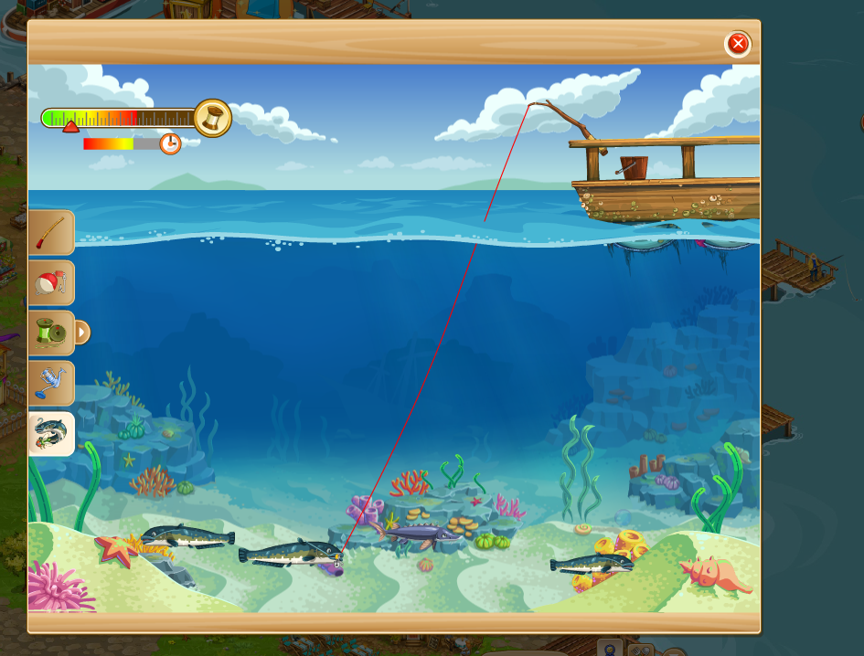 Perdón, pero hay peces en la granja de flores desde que pican se pone el sedal en rojo hasta que se rompe el sedal y ni tiempo ni nada, así que o es un fallo del juego, o con perdón muy mala leche, porque no hay forma de hacer las tareas, en mi caso las de lucio que necesito pescar, y eso que tengo hasta el cebo y pongo el + en el cebo para que salgan más. Ni que vayas pulsando despacio ni nada, el sedal hasta que se rompe es rojo. Y con los otros peces no pasa.