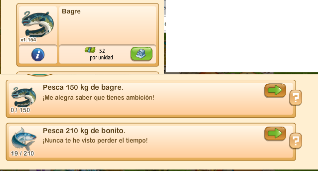 XP. OLEG y los barcos, pescar y ganar farmdolares.hasbleidym (HIS1) dijo:Bueno la verdad no te entiendo cuando dices el anzuelo para pescar el pez azul ya que yo por ejemplo ese pez lo pesco con puros anzuelos ligeros de piscardo que es el más económico; ya si te refieres a que tienes cebos de peces azules te aclaro que los cebos no "atraen" a un tipo de pez o sea que no va a hacer que salte a tu anzuelo el pez, lo único que hacen los cebos es que al darle clic a la flecha que sale te salga un pez más ya si das 10 clic porque tienes 10 cebos te van a salir 10 peces del cebo que tengas pero igual tu debes de pescarlo.misifu8 (ES1) dijo:Buenas noches,