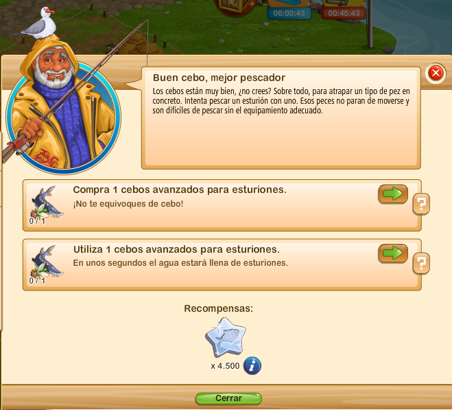 El cebo avanzado de esturión cuesta 207 oros. Si ya a algunos les costaba comprar el de 13 oros no digamos este. Y no hay forma alguna de cancelar esta misión y continuar avanzando en el juego.