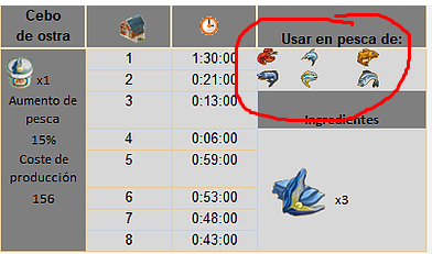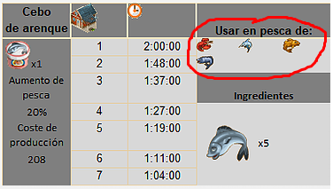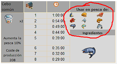 Aqui te muestro algunos ejemplos donde te indica en los pescados que actúan los cebos.