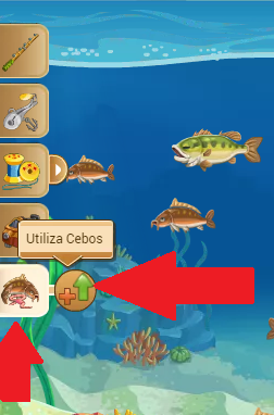 2 - Pincha la pestaña de los cebos y elige el de la carpa (obseva la flecha y círculos rojos de la imagen)