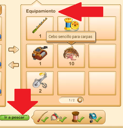 3 - Arrástralo con el cursor hacia la derecha, en la zona de equipamiento, y pincha "ir a pescar"