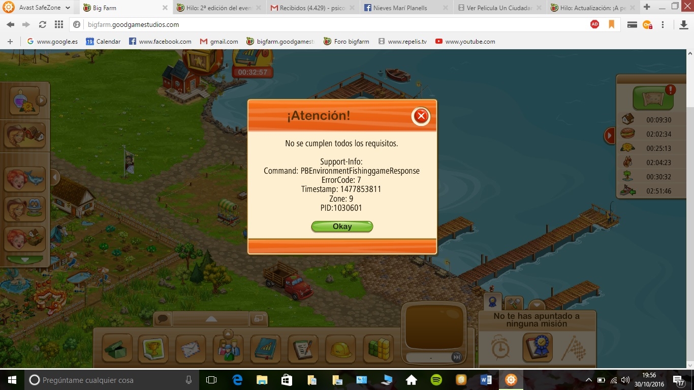 Pero ahora no se que pasa me pide que done pescado azul que he descubierto que es pescando bonito que se consigue pero despues de mandar a oleg a pescar no me suma nada, o sea, como si no hubiera pescado nada. Es un bug o es que a veces oleg no pesca nada? Mejor dicho me sumaba hasta que he llegado a 64, después ya nada.pues dejame decirte que necesitas el barco para pescarlos no aparecen en la granja de flores solo hay bonitos nada mas al menos a mi me aparecen asi, y es un error porque si no tienes cierto nivel no puedes desbloquear el bote