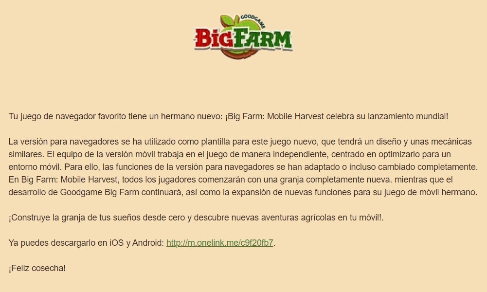 Tienes tu mensaje pasado aquí a este tema que habla de Big Farm y dispositivos móviles