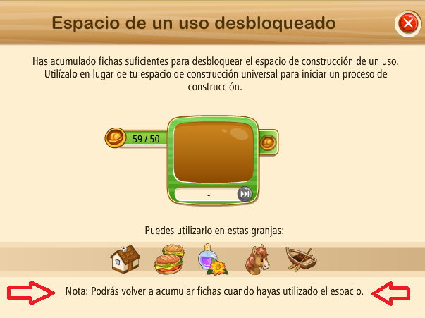 Activas la subida de nivel (ejemplo de una vaqueriza) de cualquier produccion, casas.....como siempre lo activamos y automaticamente lo primero que te utiliza es el SLOT....restandote las 50 fichas
