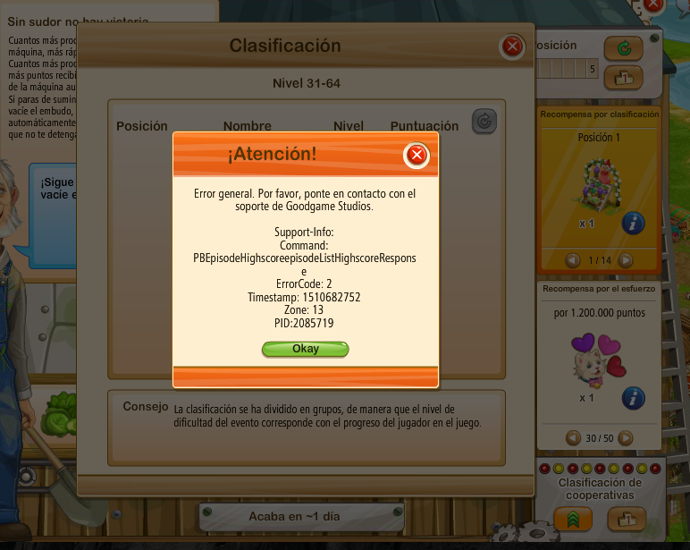 vaya!! vaya!! vaya!!! que raro que ocurran errores cuando se hacen los dichosos parches, el evento el gran trabajador no deja ver la clasificación general, se salto 4 horas de col en 20 minutos, a algunos compañeros los bajo de posición a algunos otros se les reinicio el marcador, y no falta que nos encontremos mas sorpresitas por allí