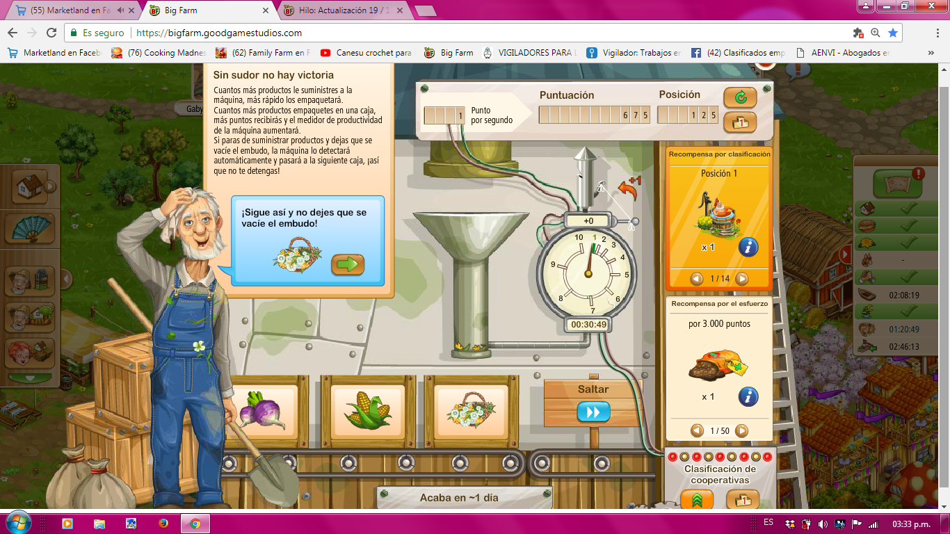 Me han desaparecido los puntos extras por segundo, el producto que tenía en el embudo, pero hay una cosa que antes de esto no tenía y que me ha aparecido de repente la mala leche hacia estos tarugos de GGS, que seguro se presentan a un concurso de ineptos y lo pierden por ser unos perfectos inútiles.