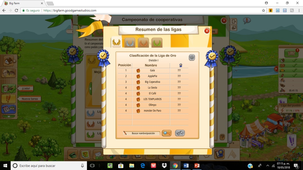 -campeonato de cooperativas, puede ser repetitivo y cansado para algunos que ya tienen tiempo aqui, pero para otros que no tienen tanto tiempo es una oportunidad mas para alcanzar puestos altos, pero el abuso de esto de parte de las cooperativas mas grandes como tales son: Gaia, Monsters inc, los templarios, entre otros que colaboran entre si para así alcanzar gigantes puntuaciones en dichas competencias y es algo que molesta a los jugadores honestos que solo queremos divertirnos y no estar ahí de trolls impidiendo a otros alcanzar dichos tops, y esto ya es un tremendo abuso de parte de estas cooperativas abusivas que solo piensan en si mismos y se sienten tan orgullosos de si mismos que no les importa nada, yo lo se porque forme parte una vez de gaia y me hecharon solo porque me negaba en quitar mi silo, compostador y que dejara de participar en las islas de eventos solo porque son para "Grandes jugadores de mayor nivel a 100",