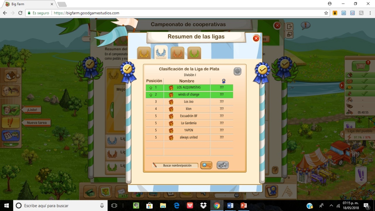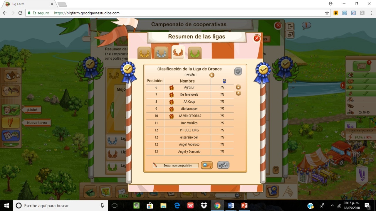 también lo sufren las grandes cooperativas? jaja si ellos son los que abusan del sistema y bastante y no dejan a uno jugar bien aquí, aun que yo tenga unos meses de juego en big farm tengo mucha mas experiencia de este tipo de cosas que pasan en todos los juegos online que he jugado hasta la fecha joven, así que puede que sea un usuario nuevo en big farm pero soy veterano en cuanto a ver como los usuarios abusan tanto del sistema como los bugs de los juegos para ganar fácil y no para divertirse, y sobre todo ese mr halat de gaia ha provocado a varios jugadores que eran parte de su cooperativa también como lo fui yo y fueron expulsados por la misma razón que la mía así que lo que dices puede que seas un amigo suyo de gaia o de alguna otra cooperativa grande y los defiendes como tal, pero bueno pueden decirme lo que quieran porque ya he recivido los mismos comentarios de siempre a lo largo de bastante tiempo como jugador veterano asi que siempre y siempre serán unos usuarios abusones para mi que solo entran solo para ganar y no para divertirse, bye chico!Goodfarmer (HIS1) dijo:Buenos días gamemasters, por el poco tiempo que llevas en el juego se nota tu desconocimiento este. Empiezas culpando a las grandes cooperativas de todos tus problemas pero los problemas que planteas no son culpa de ellas sino de la forma en que se diseñó el juego que cada dia le dan más ventajas y estimulan a los que compran oros. Al final ese es su negocio aunque últimamente andan dando pasos en falso en ese sentido.