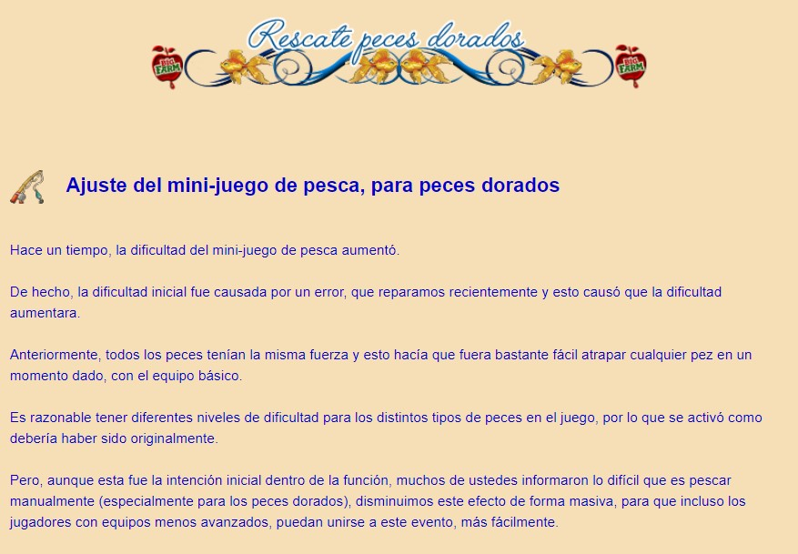Recordad, que en esta actualización, se ajustó el evento del Rescate de Peces Dorados, abre el spoiler, haz clic en la imagen y accede al Anuncio completo.