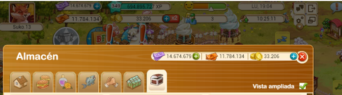 pues a estas horas sigue sin aparecer,para no hablar de los errores al vender,plantar ,no se ve el tiempo,ni la cosecha,vamos muchos errresCarlos1956 (ES1) dijo:me sumo el almacen de la granja dulce no esta