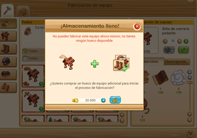 Estoy esperando, no solo yo, sino 450,000,000 - cuatrocientoscincuentamillones - de jugadores, el tutorial completo, paso a paso, las explicaciones de como fabricar objetos para los caballos en el edificio WORKSHOP!