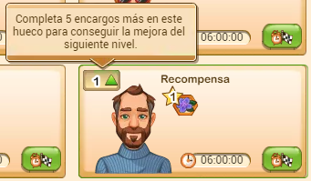 A medida que vayas completando encargos, éstos subirán de nivel (el número que aparece al lado del triángulo en estas imagenes, por ejemplo). Si aparece el icono en rojo sería que el nivel disminuyó y si aparece el símbolo en amarillo, sería que el nivel se mantuvo igual.