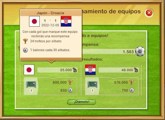 Tienes tu mensaje pasado aquí, al tema del evento del fútbol. Cualquier incidencia que encontréis en ese evento, enviadla directamente a Soporte, siempre adjuntando una captura de pantalla donde se vea el error y explicando con todo detalle el problema por favor. Gracias