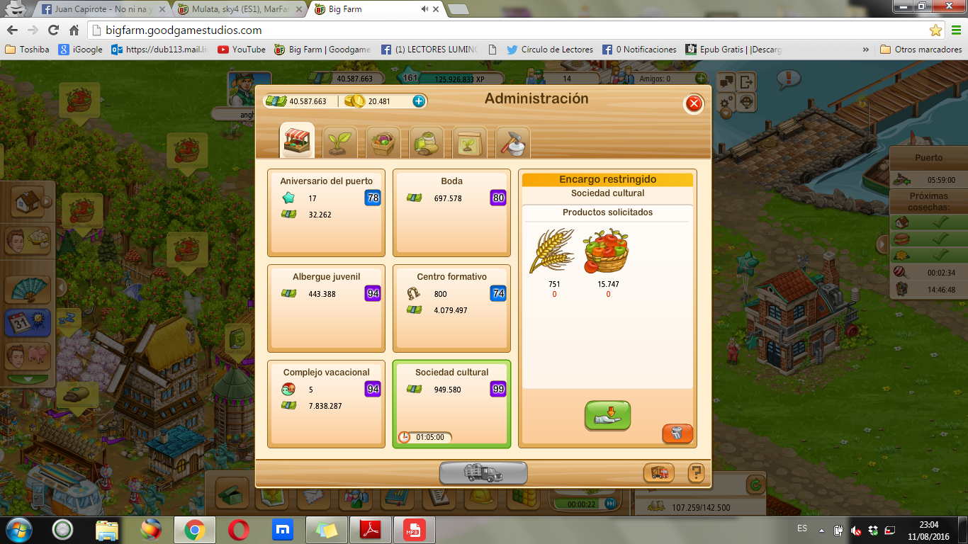 Esta claro que eso de que te regalen los oros es para la gente que ya ha usado los oros en comprar los edificios especiales (almacen azul) o para que gastes oros en el intento de completar el pedido porque sino dime a mi como diablos puedes conseguir 12400 manzanas en una hora o 2725 pastelitos siendo que el almacen normal tiene una capacidad de 2450. En cuanto a las manzanas la unica opcion es llenar la granja de ellas