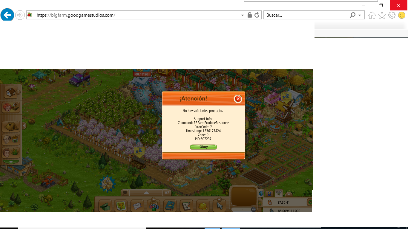 La información de la que disponemos es que el Equipo de Big Farm, es consciente ya del problema y está afectando a varios servidores.