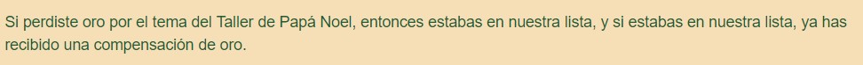 Los oros que se devolvieron, fueron los ocasionados por el bug, ¿es posible que hayáis usado oro, de manera voluntaria, para adelantar el Papá Noel y conseguir una mejor decoración?