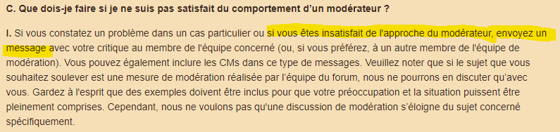Accessoirement, j'aime l’intervention du pseudo modérateur,qui répond sans respecter son contrat de respect et neutralité, et clôt le post sans qu’on puisse lui répondre...