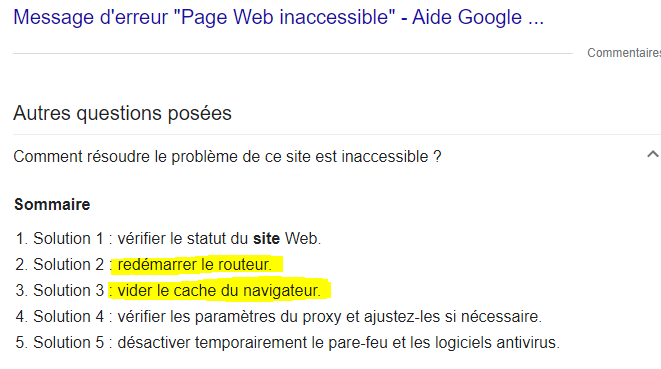 Redémarer le routeur et vider le cache du navigateur fait et toujours la même chose : Site inaccéssible.