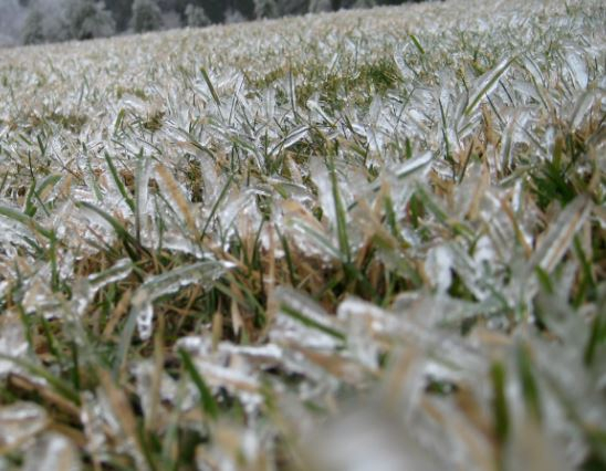 L'autre jour chez moi l'herbe était toute gelée (mais toujours verte)