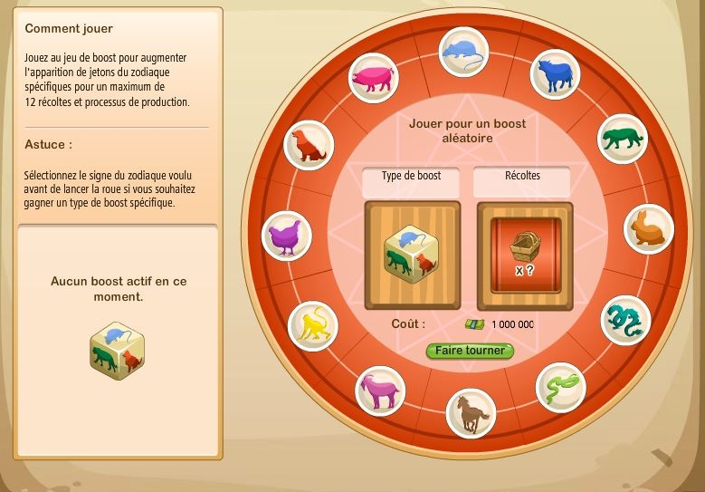 Nous avons également la possibilité d'utiliser des boosts soit grâce à des dollars : on peut tomber sur n'importe quel signe, soit avec de l'or. Dans ce cas, il faut cliquer sur le signe voulu avant de faire tourner la roue.