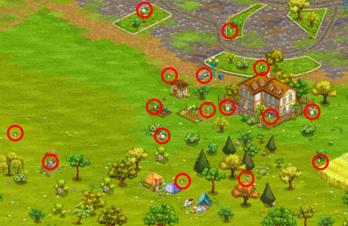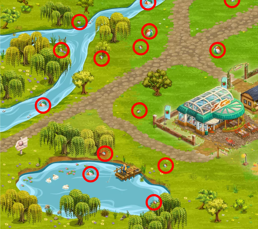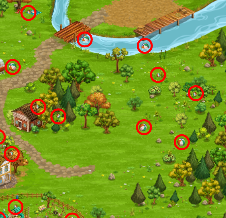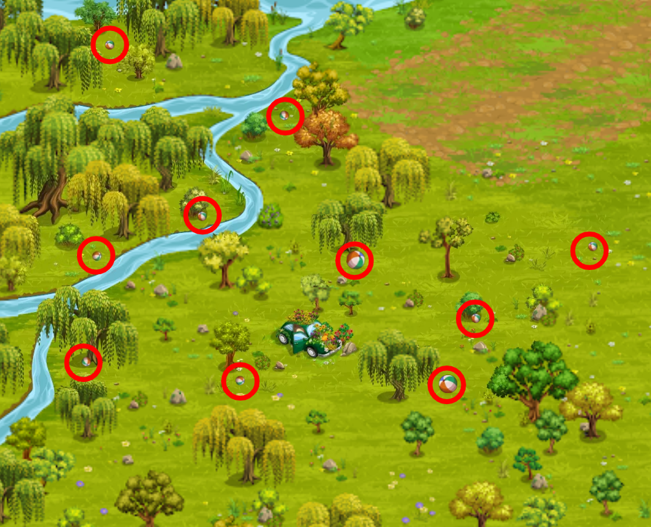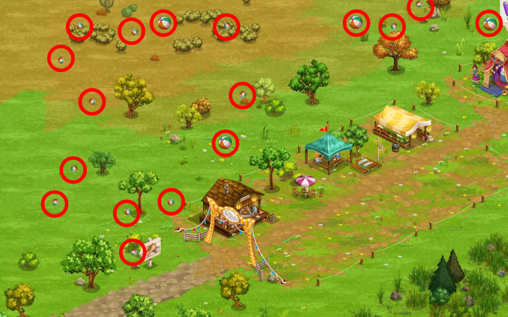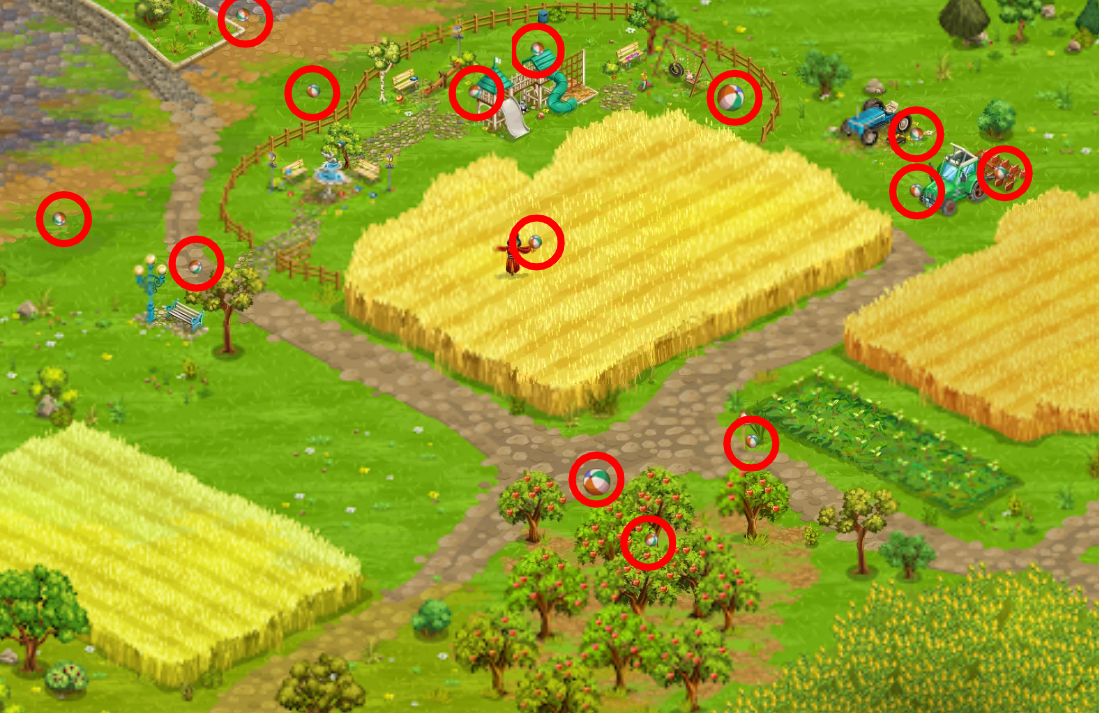 Pour cela, vous devrez vous balader dans l’environnement de vos trois fermes, ainsi que dans le ranch et le village de la coopérative, chaque jour. 35 ballons de plage y seront cachésIl y a 6 ballons dans la principale et la gourmande, 7 dans la florale et 8 dans le ranch et le village de coop.