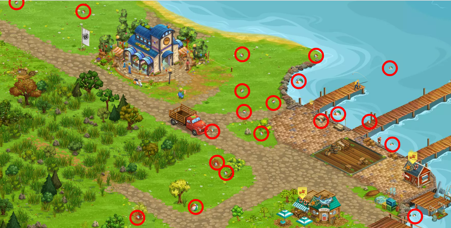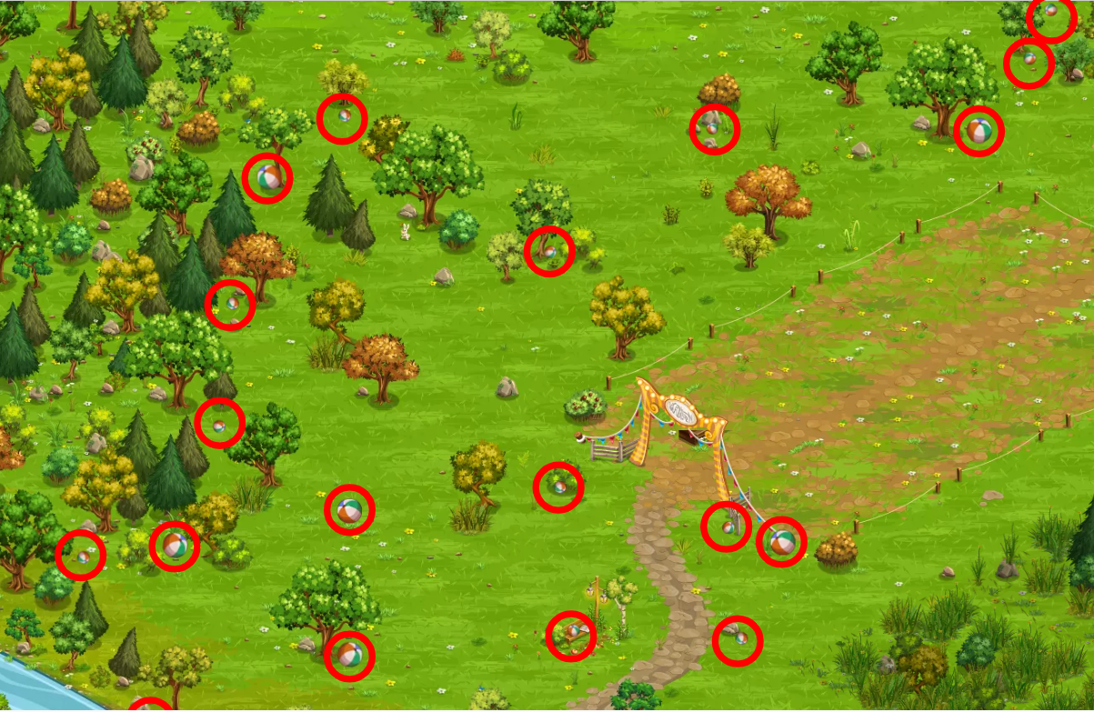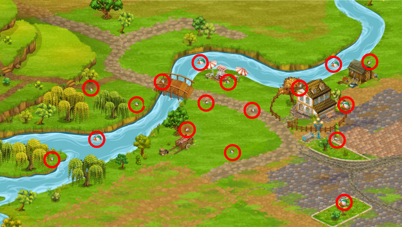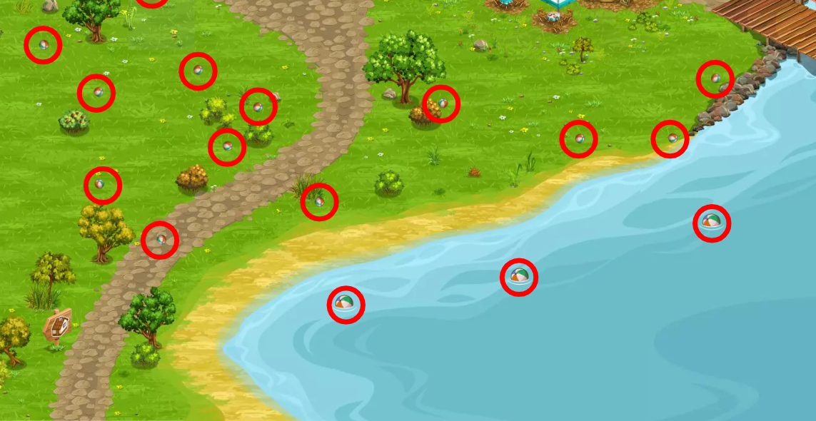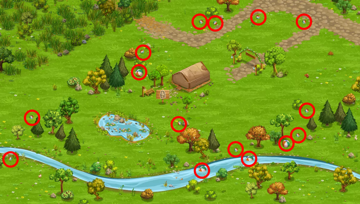 Pour cela, vous devrez vous balader dans l’environnement de vos trois fermes, ainsi que dans le ranch et le village de la coopérative, chaque jour. 35 ballons de plage y seront cachésIl y a 6 ballons dans la principale et la gourmande, 7 dans la florale et 8 dans le ranch et le village de coop.