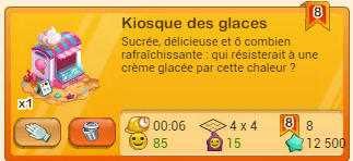 On peut trouver les glaces en récoltant les différents bâtiments, champs et vergers de la ferme principale.. Un certain nombre de glaces est à retrouver, selon votre niveau, afin de pouvoir recevoir en cadeaux un joli Kiosque des glaces qui fera la joie des gourmands et une récompense au choix : un potager de la plage, ou un verger de pêche de la plage ou une amanderaie de la plage 😊