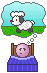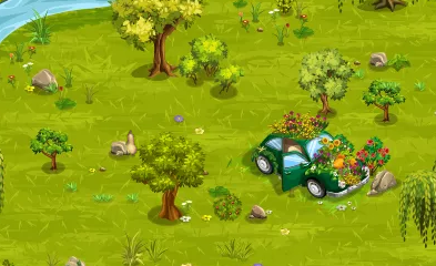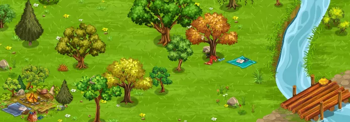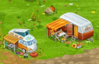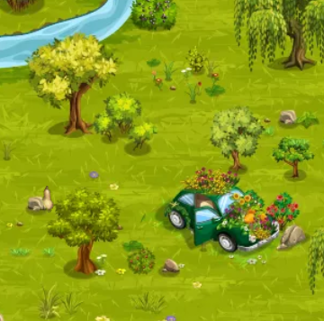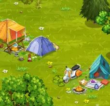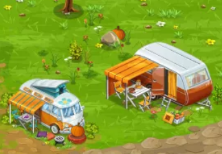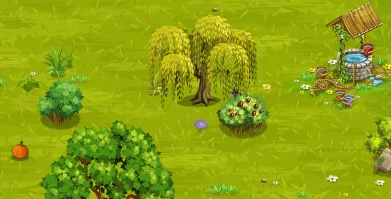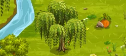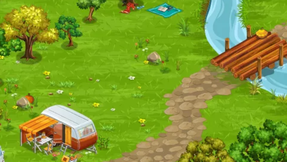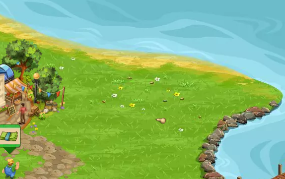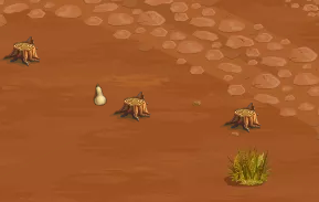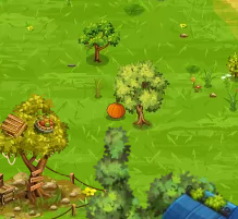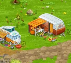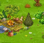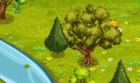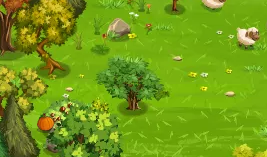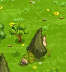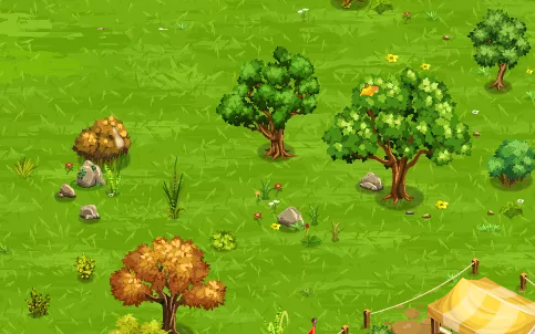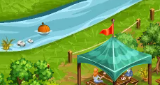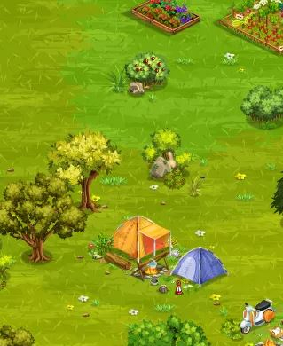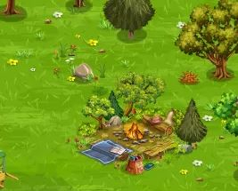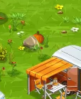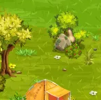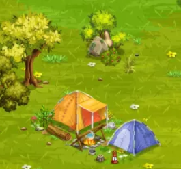2 (blanches, 1 sur le petit bosquet dans le quart supérieur gauche, l'autre au pied de l'arbre à la verticale de la tente bleue)