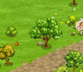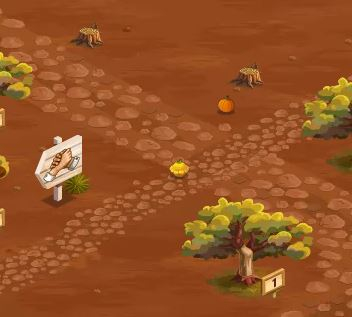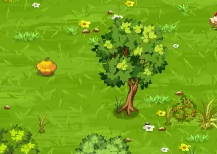 2 (orange bien visible, la 2ème jaune au pied de l'arbre vert clair moitiée basse de l'image)