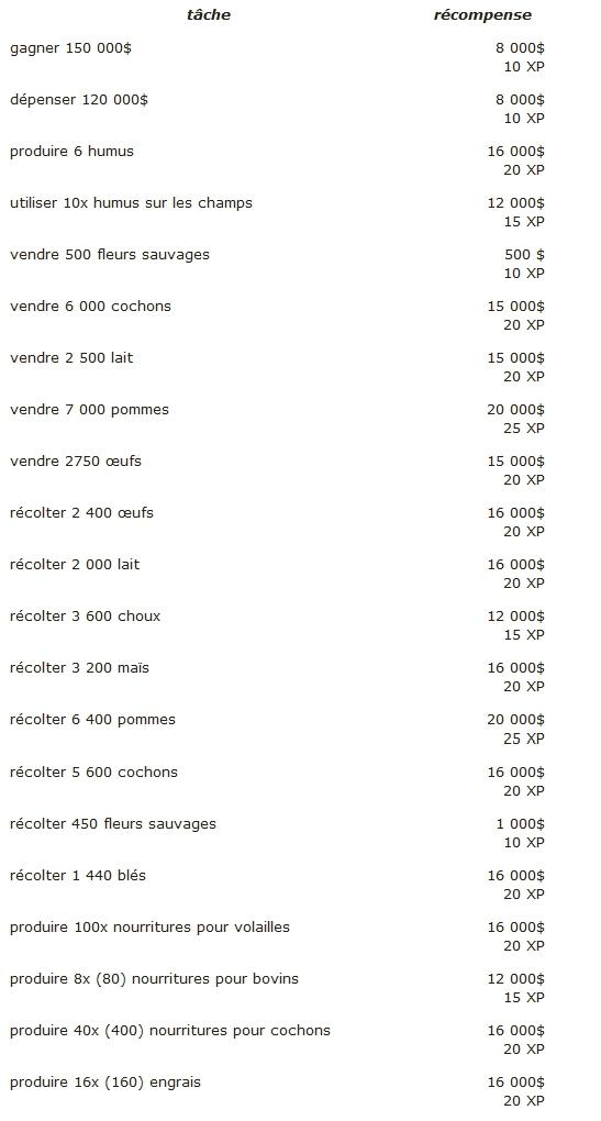 Je viens de retrouver ce qui reste du tableau de Mélusine sur les tâches répétitives qui apparaissent quand on a achevé assez d'autres tâches. Il est déformé par la migration du forum, mais reste très utile.