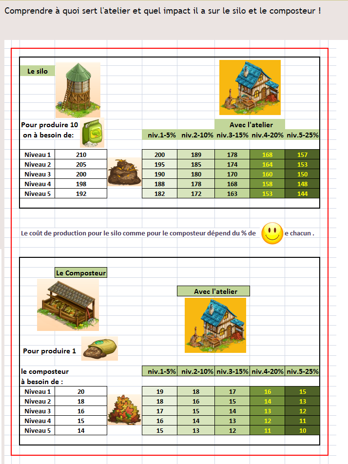 Exemple; au niveau 1 on passe ainsi de 9 à 10 nourritures demandé sur un bâtiment d'animaux.
