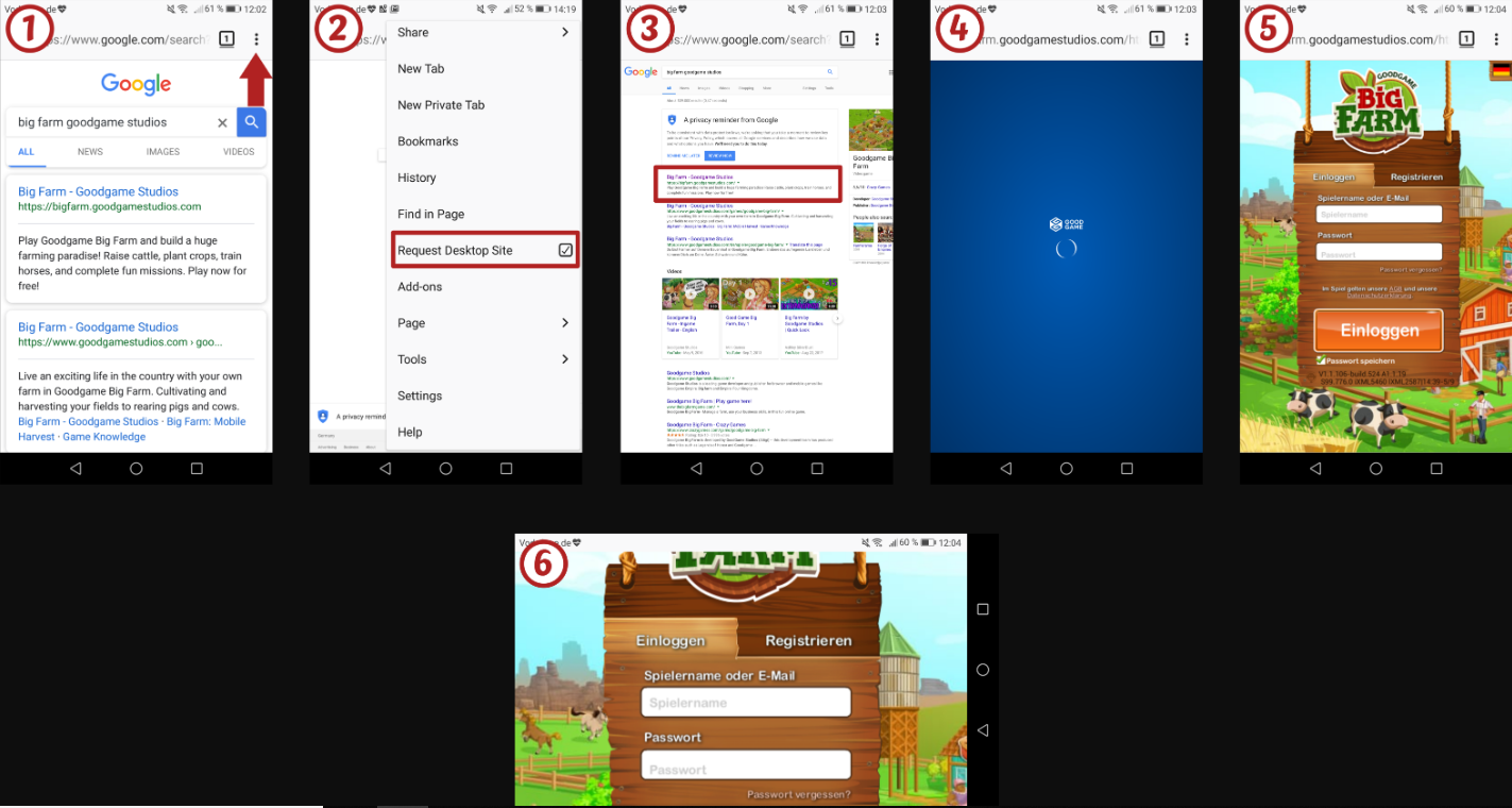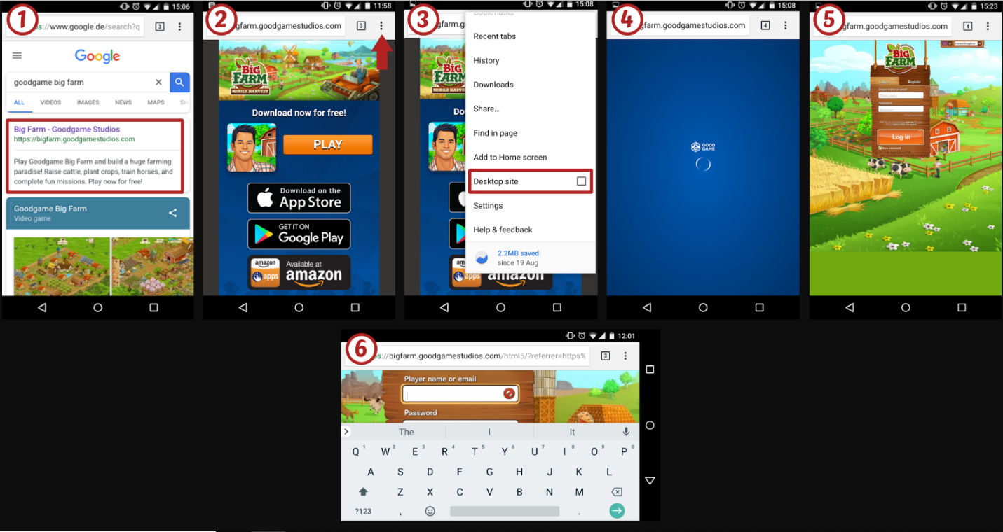 Pour continuer à jouer à Big Farm dans le navigateur de votre appareil mobile, veuillez suivre les étapes indiquées pour votre navigateur préféré: