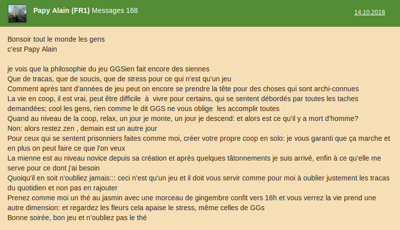 "A nous amusement retrouvé, stress et tracas Gégésien envolés"