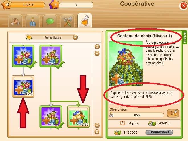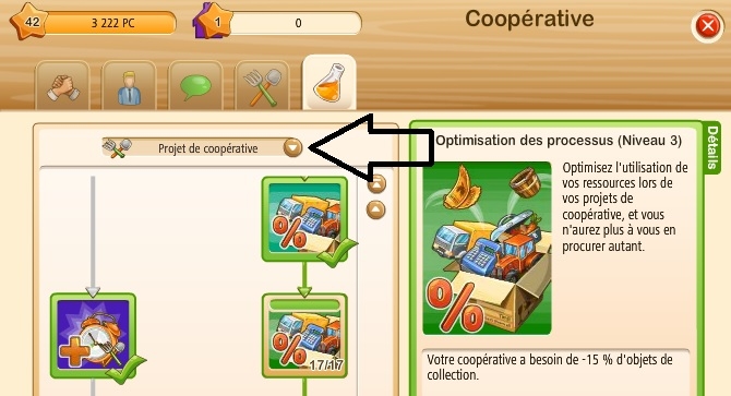 Nous sommes maintenant sur un projet de recherche, qui permettra à tous les membres de la Coopérative de bénéficier de différents bonus sur leur ferme, en l’occurrence : le prix des cochons à la vente sera augmenté de 20%, bien sur les projets que vous pouvez voir sont en fonction du niveau de votre coopérative, chaque budget ne coûte pas le même nombre de dollars et chaque budget nécessite un nombre de participants divers.