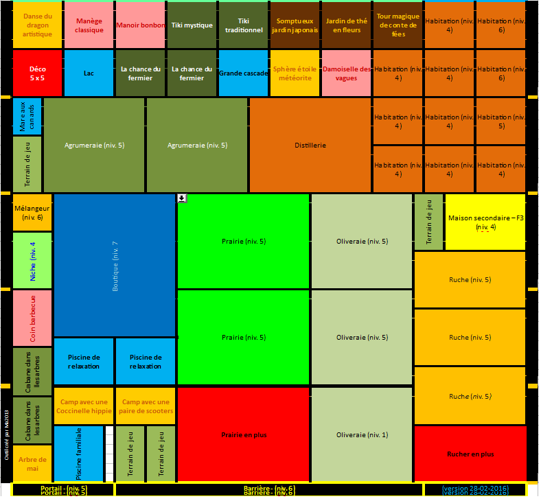Voici un tétris avec 3 pommeraies et 2 maisons en plus (peut-être 1 seule suffira, dans ce cas, tu peux mettre une déco 5*5 à la place). Il reste de la place pour les 4 décos rouges, qu'en penses-tu ?