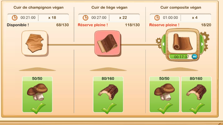 la gestion des matières première pour l'atelier de sellier n'ai pas si évidente. Si je ne pense pas à remette la fabrication sur le cuir champignons je risque de me retrouver avec du cuir végan à revendre et une pénurie de champignon pour la suite