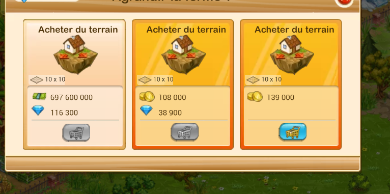 Personnellement, aucun nouveau terrain à acheter, malgré plusieurs f5 et reconnection