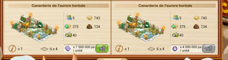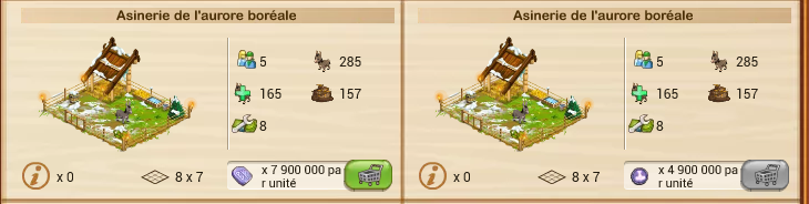 - on peut acheter avec des pièces une canardière ou une asinerie dans les offres en runes: ces bâtiments ne sont pas présents dans les offres en pièces.