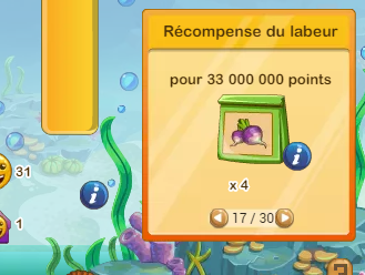 Pour valider ta récompense du labeur, il faut produire ( puis récolter), des flocons pour poissons rouge