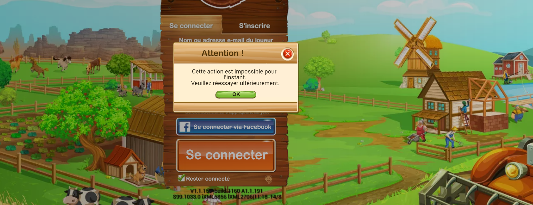 Après avoir fait Ctrl + F5 ,pas de retour direct sur ma ferme , mais ce message :