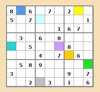 Voici la grille vierge !Sous certaines cases, se cachent les lettres du mot à trouver.Ces lettres seront écrites sur un fond en couleur ; couleur que vous retrouverez dans votre sudoku et qui vous donnera donc l'ordre des lettres. (Je sais bien que certains, sans faire le sudoku, trouveront le lieu de mon bug facilement. C'est un premier essai avec ce jeu. Il sera toujours temps de le corser un peu plus pour la prochaine fois