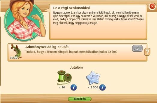 A virágfarmra lépve a bal oldali feladat panelen látható a horgászathoz kapcsolódó feladat.