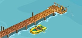 Ha elértük a horgászat 15. szintjét, lehetőségünk lesz kihajózni más vizekre is. Ekkor egy sárga csónak jelenik meg a móló mellett, ahol Oleg horgászik a virág farmnál.